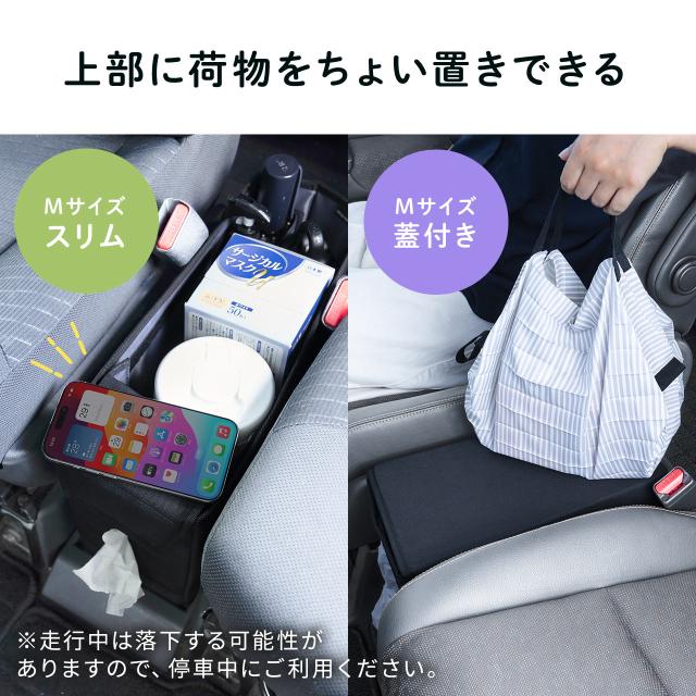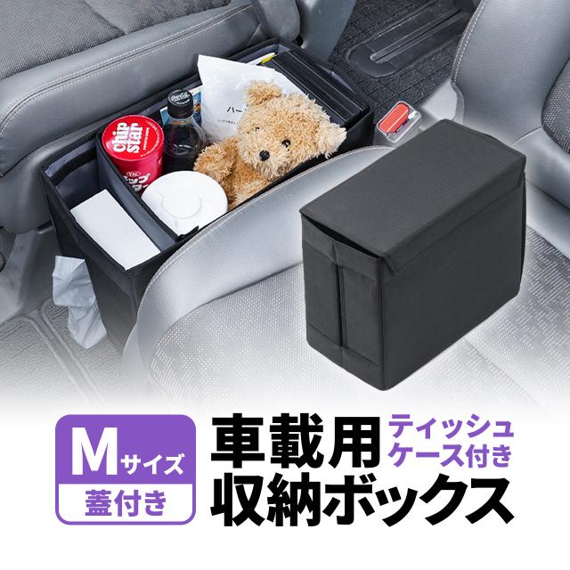 ウォークスルー収納ボックス 車用ティッシュボックス Mサイズ 蓋付きタイプ 車用ボックス コンソールボックス 収納ボックス 折りたたみ[200-CARBG007]