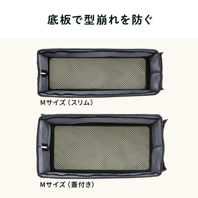 ●底面の面ファスナーで滑りにくくなっており、ボックスがずれるのを防ぎます。