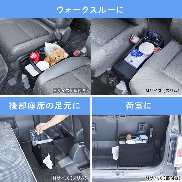 ⇒ご購入の前にご確認下さい車内の小物をすっきり収納できるウォークスルーボックス。ティッシュボックスを収納して引き出しやすい便利な設計。コンパクトに折りたたんで収納することができる車用ボックス。Mサイズ。蓋付きタイプ。【WEB限定商品】