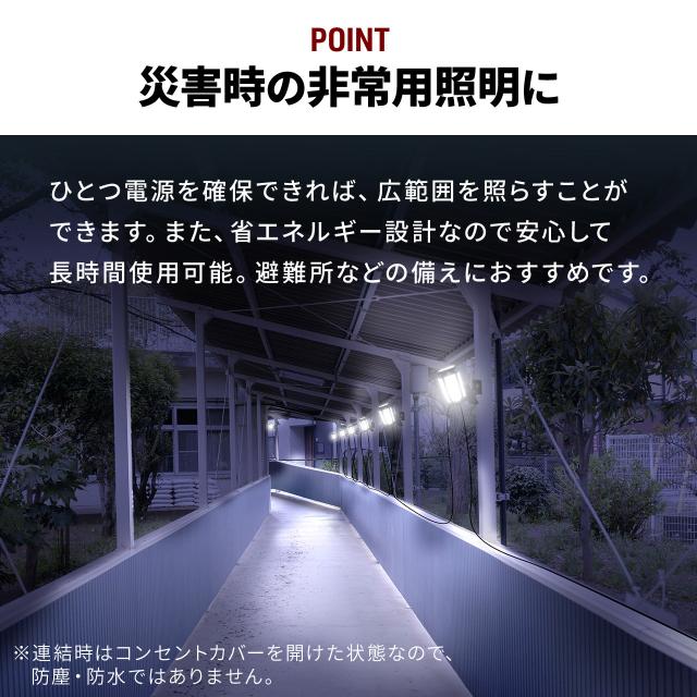⇒ご購入の前にご確認下さい防水・防塵IP65対応のLED作業灯。最大7500ルーメン、10m照射。多彩な設置方法と角度調整可能。連結コンセント付きで最大8台まで連結可能。【WEB限定商品】