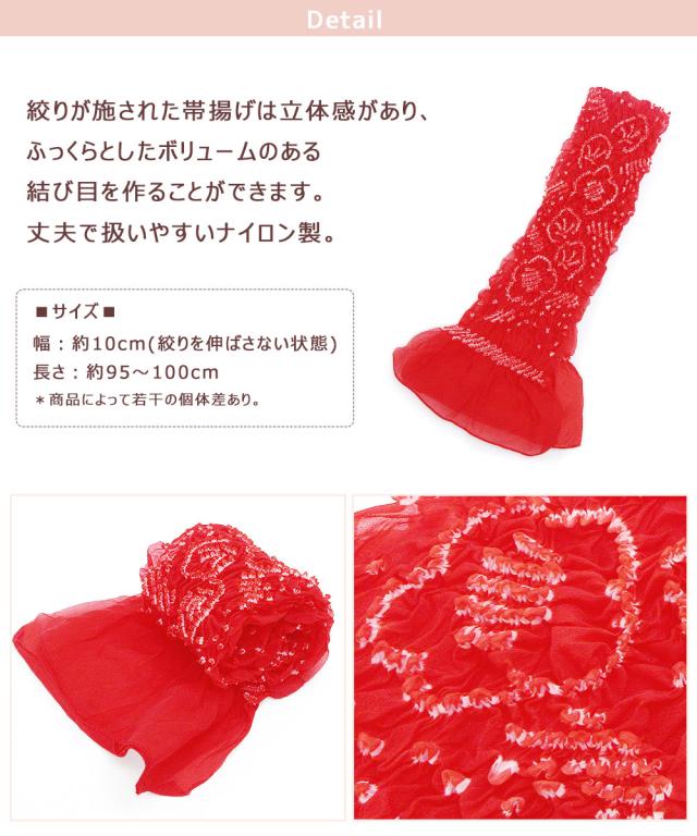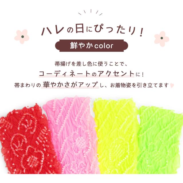 【1枚までメール便発送OK】七五三 帯揚げ 7歳 女の子 絞り 帯あげ ナイロン 4色 赤 ピンク 黄 緑 グリーン 花柄 お洒落 可愛い 和装 着付け 小物 753 子ども キッズ 女の子 着物 結婚式 礼装 お祝い 正月 雛祭り