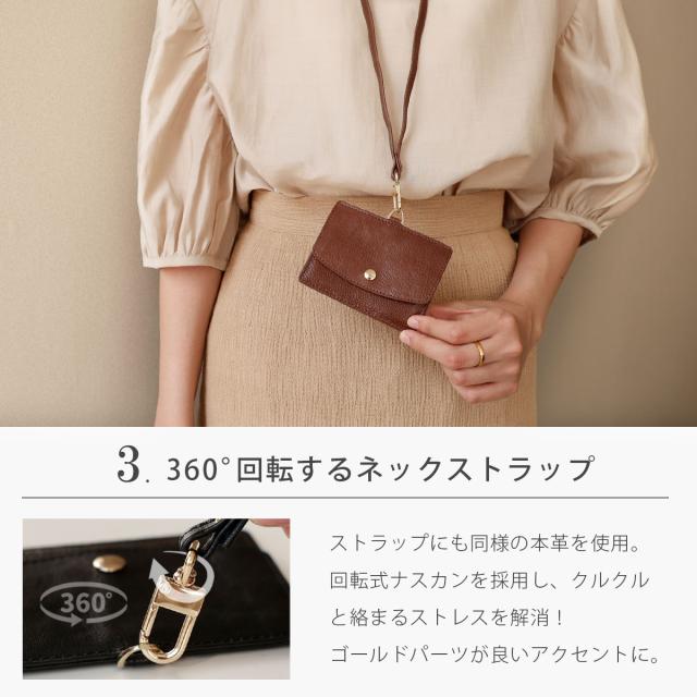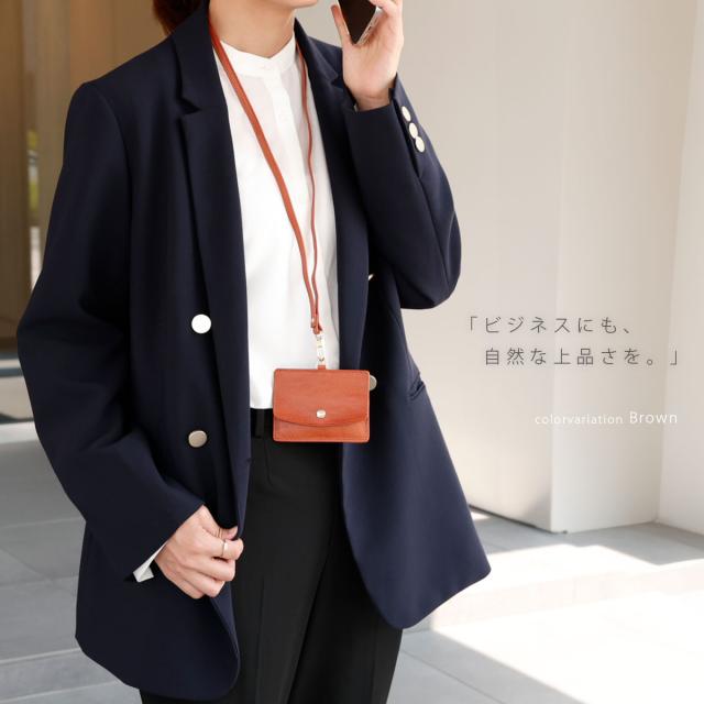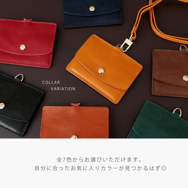 IDカードホルダー ネックストラップ付き カードケース ティエリス メンズ レディース ユニセックス 本革 タンニン鞣しレザー IDカードケース パスケース ブラック キャメル ダークブラウン グリーン ネイビー オレンジブラウン レッド ab-cd503