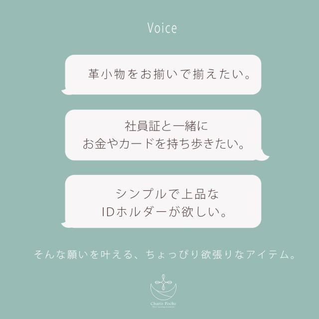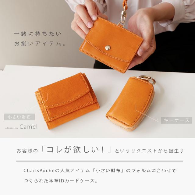 Charis Poche 人気ウォレット【女性が欲しかった小さい財布】のタンニン鞣しレザーであるティエリスバージョンと同じ革を使用し、お財布とセットで合わせて使えるようにデザインしたCharis Pocheオリジナルの本革製IDカードケースです。