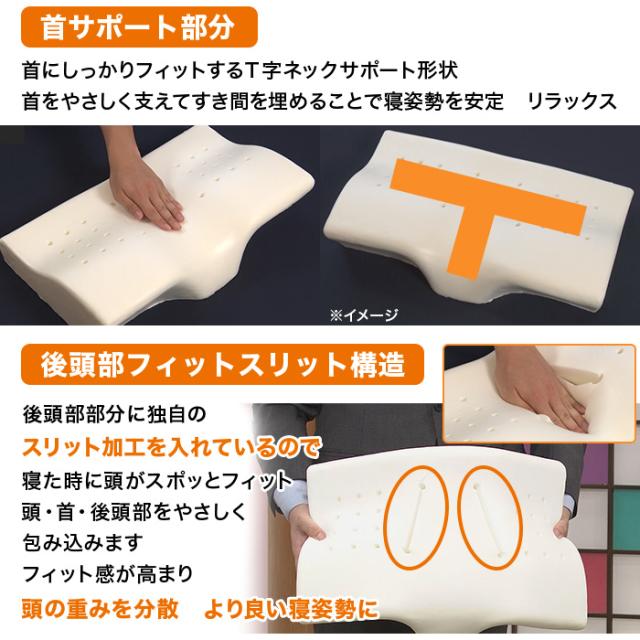 T字形状で首がしっかりと支えられているので 沈み込みすぎずに寝返りもしやすい