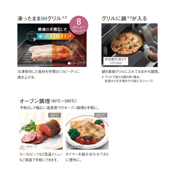 またIHと平面ヒーターでフラットな庫内を実現。焼き網のないグリル皿でお手入れラクラク。