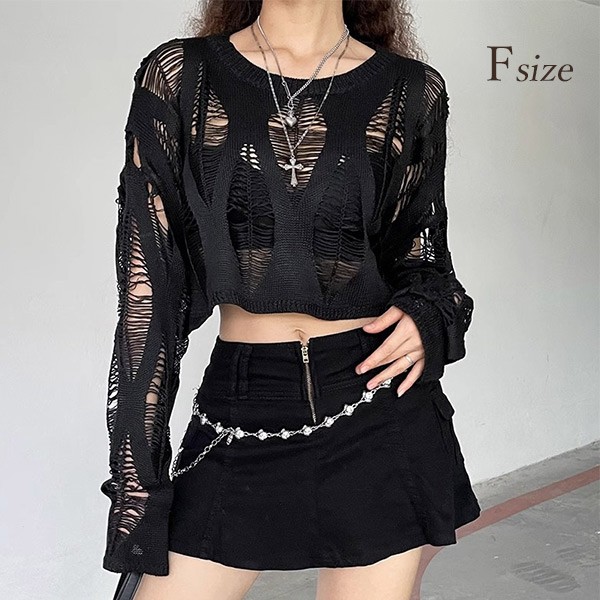 トップス ニット ゴシック パンク 地雷系 原宿風 Y2K ハロウィン セクシー SEXY 薄手 欧米風 ヒップホップ ハロウィン衣装 ダーク系 ゴシック風 個性的 舞台 Halloween