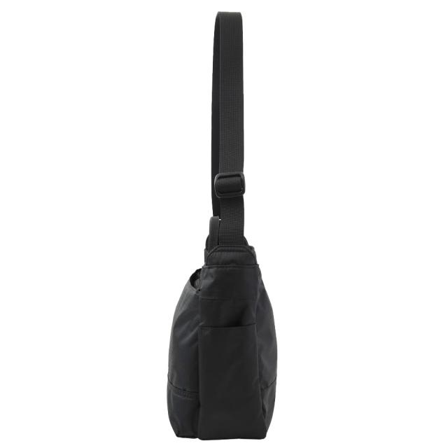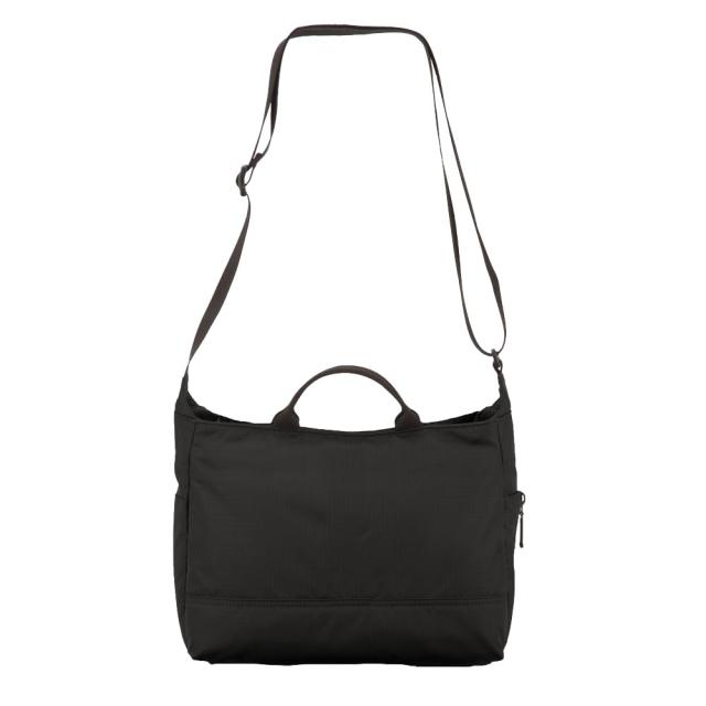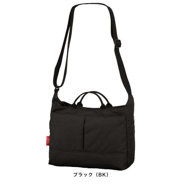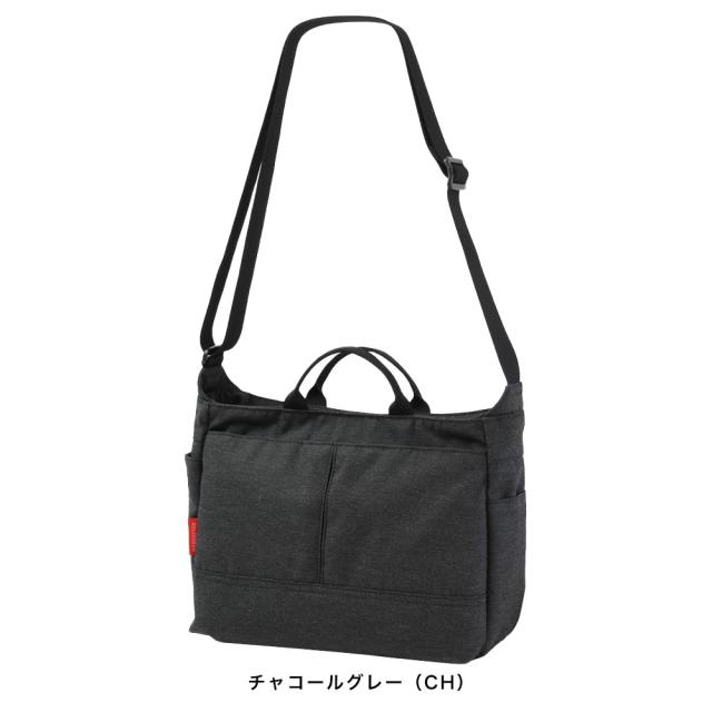 ハンドル付きで肩掛け以外に手持ちも可能。前面ファスナーポケット内にはオープンポケット×2、ペンホルダー×1、キーリング(着脱式)×1を装備。メインルーム前面側にはオープンポケット×2、メインルーム背面側にはファスナーポケット(メッシュ)×1を装備。側面には小物がスムーズに取り出せるオープンポケットを装備。ペットボトルなどを収納できるメッシュ内蔵拡張式ポケットを装備。