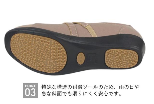 丁度良い高さの3cmヒールは旅先でも靴擦れしにくく、快適な歩行をサポート。