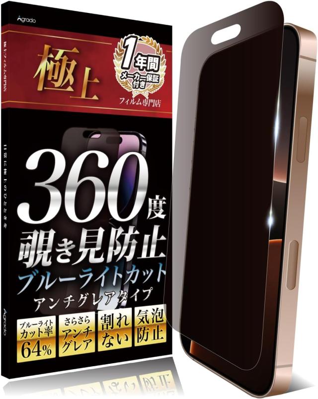 iPhone 16 Pro 覗き見防止 ブルーライトカット かんたん 安心 日本製 さらさら 360度 全方位 プライバシー 保護フィルム スマホフィルム のぞき見防止 保証 アイフォン アイホン おまけ付き アンチグレア おすすめ 防水ケース ポイント消化 除き見