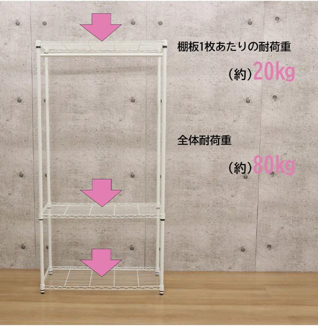 ●耐荷重(約):20kg/棚板1枚、ハンガー20kg、全体80kg