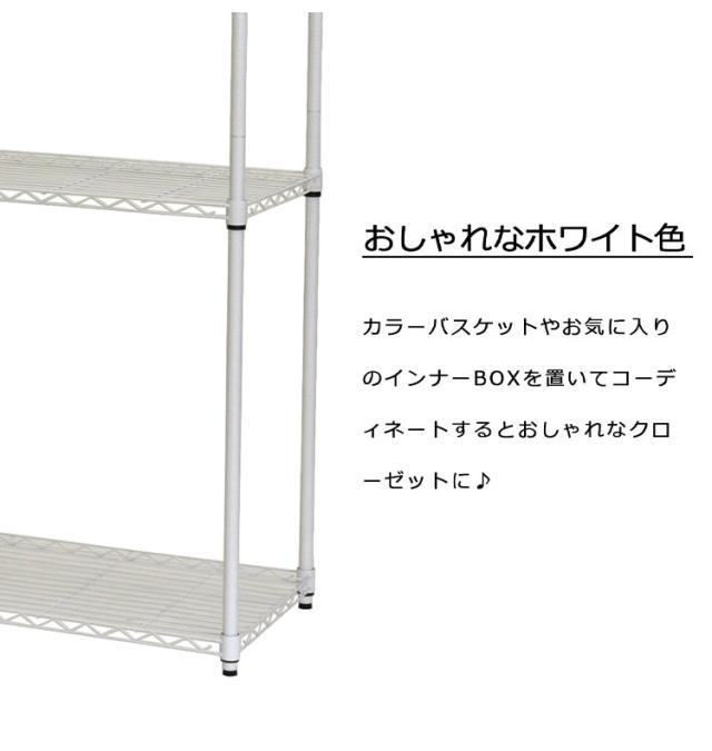 衣類などをかけるハンガーポールと高さを自由に調節できる棚板が付いていますので、バッグや収納用のインナーBOXを置いたりできます。