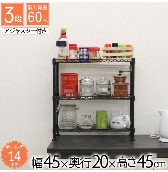 ラックミニラック 3段 収納 棚 収納棚 収納家具 幅45cm スチールラック シンプル コンパクト キッチン収納 スパイスラック 調味料 高さ調節可能 収納ラック 小物収納 小物ラック(代引不可)【送料無料】