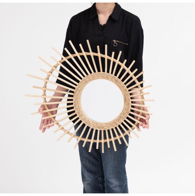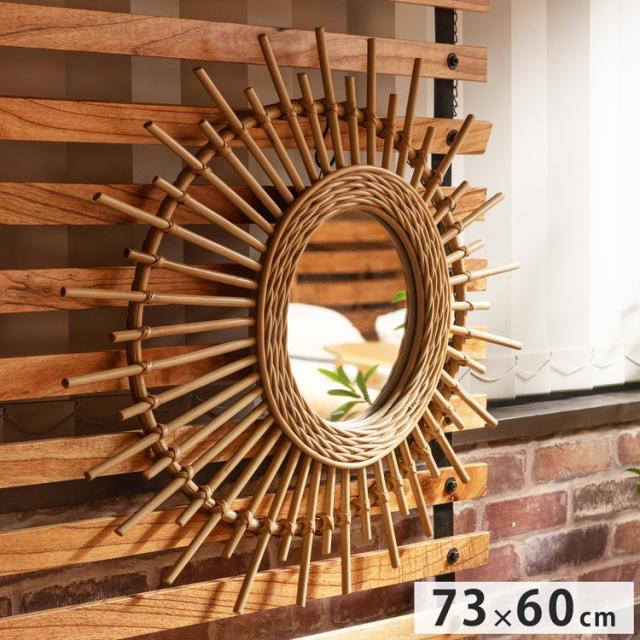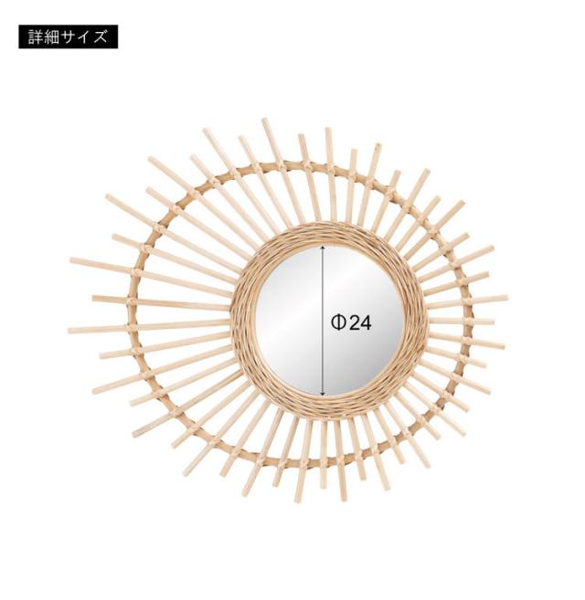 ラタンミラー ミラー 鏡 姿見 壁掛け ウォールミラー 丸型 円型 ラタン 籐 シンプル おしゃれ ナチュラル インテリア 省スペース 新生活 一人暮らし(代引不可)【送料無料】