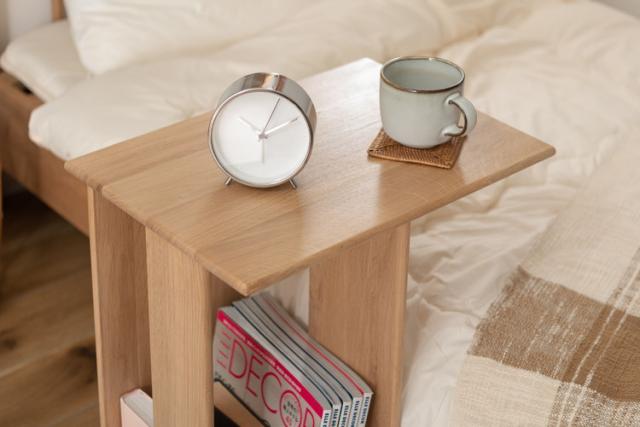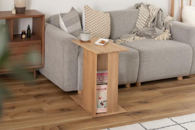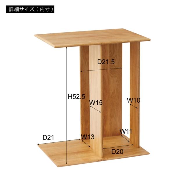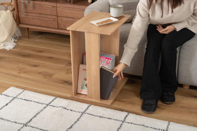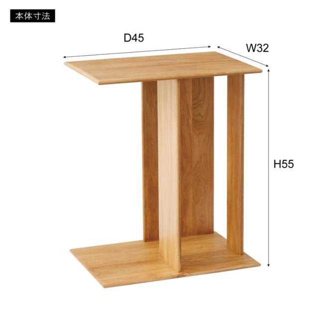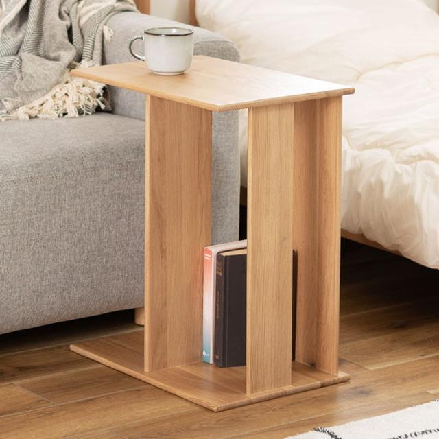 ●耐久性があり高級木材の一つとされる、美しく個性的な雰囲気を持つ天然木(オーク)の無垢材(幅ハギ材)を使用したサイドテーブル。●足元の収納スペースが移動の手間を省き、空間を快適に。●ソファ用のサイドテーブルとして、またベッド周りのサイドテーブルとしてもおすすめ。●幅32×奥行45cmの広々とした使いやすい天板スペース。●上下どちらも天板として使えるので、ソファの右側・左側どちらに置いても使えます。●天板と天板の間の広いスペースはマガジンラックや小物収納として便利。●角は丸みを持たせてあるので安心して使えます。●天然木(オーク)の無垢材を使用した滑らかで手触りの良い、ぬくもり溢れるサイドテーブル。