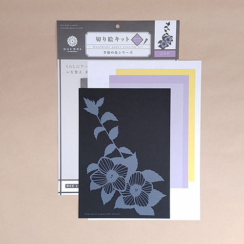 ●セット内容 : 切り絵の下絵、色紙(黄・うす紫)、薄紙(トレーシングペーパー)、白台紙、作り方説明書