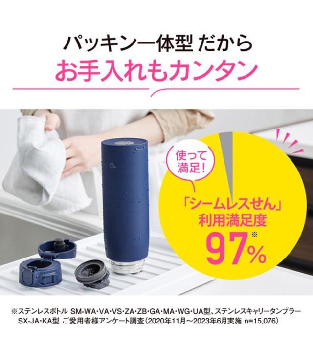 ※せんとパッキンをひとつにしたせん構造の技術。ステンレスボトルにおいて(2020年7月30日発表による 象印社調べ。)