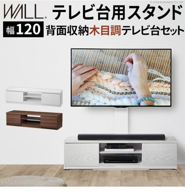 WALLインテリアテレビスタンド テレビ台用スタンド 背面収納木目調テレビ台セット幅120cm 32~60v対応 壁掛け風 壁寄せテレビ台 TVスタンド テレビボード リビングボード ローボード 背面収納(代引不可)【送料無料】