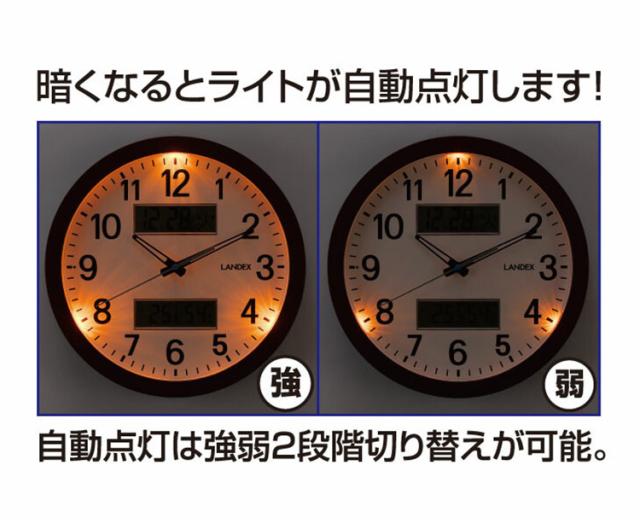 月・日・曜日表示、温度・湿度表示、静音設計、自動点灯機能
