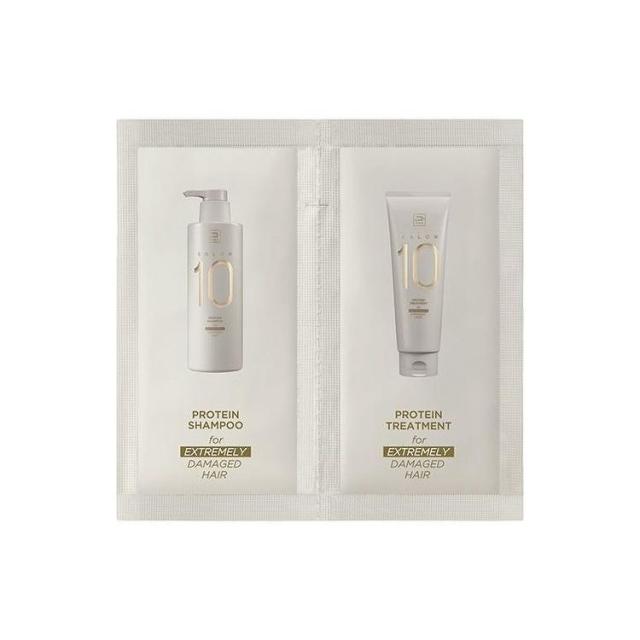 「SALON10」1回分シャンプー&トリートメントパウチ。<シャンプー>頭皮と同じ弱酸性のきめ細やかな柔らかい泡で、髪の絡まりをほどくように優しく汚れを落とします。髪にハリコシを与えるタンパク質/ アミノ酸/ コラーゲンを配合し、しっとりとした洗い上り。<トリートメント>塗って10秒パックするだけ、ダメージケア成分がキューティクルへ浸透し、髪のダメージを補修します。タンパク質/ アミノ酸/ コラーゲンを配合し、触りたくなるシルクのような質感の、しなやかサラサラの髪へ。ごわつきや傷んだ髪に適したリッチな使用感。