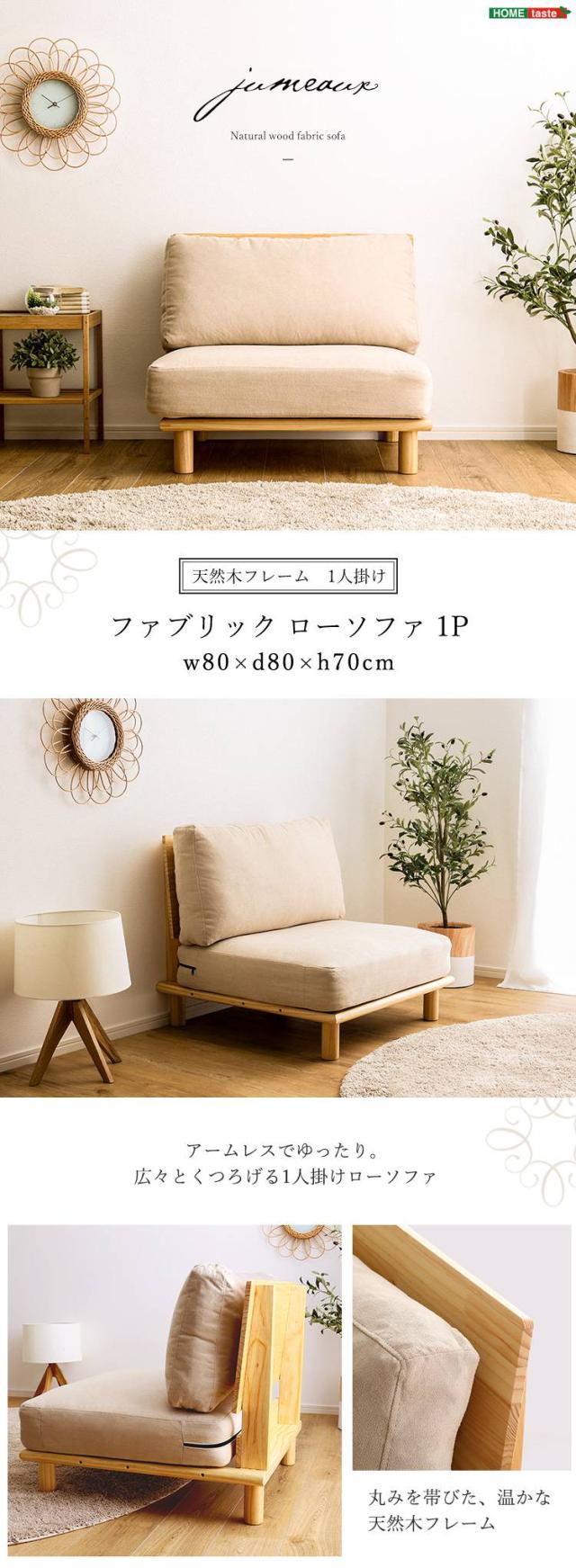 ファブリックローソファ 1P ファブリックソファ ローソファ 天然木 パイン材 フレーム 1人掛け シンプル cafe 北欧 1P 脚付き クッション アームレス(代引不可)【送料無料】