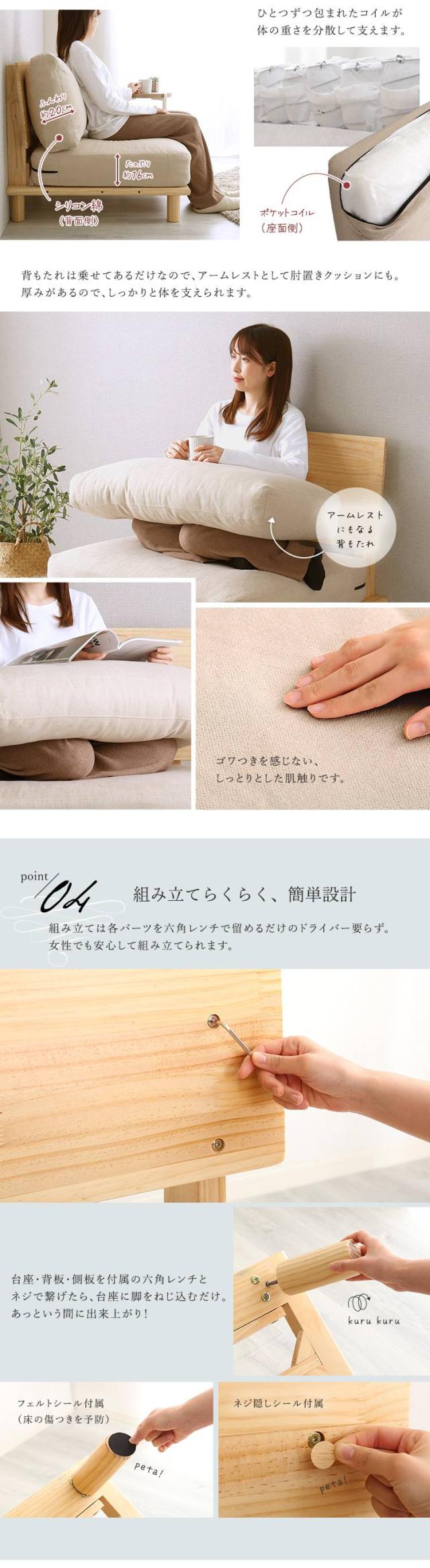 【素材】天然木、ファブリック、シリコン綿、ポケットコイル