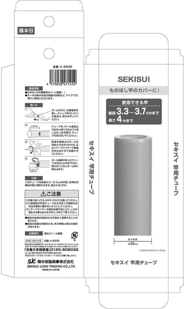 積水樹脂 セキスイ 竿用チューブ 直径3.3~3.7cm用 グレー A-35GR 補修 保護 日本製 熱収縮 腐食 劣化 防止 サビ 抑制【送料無料】