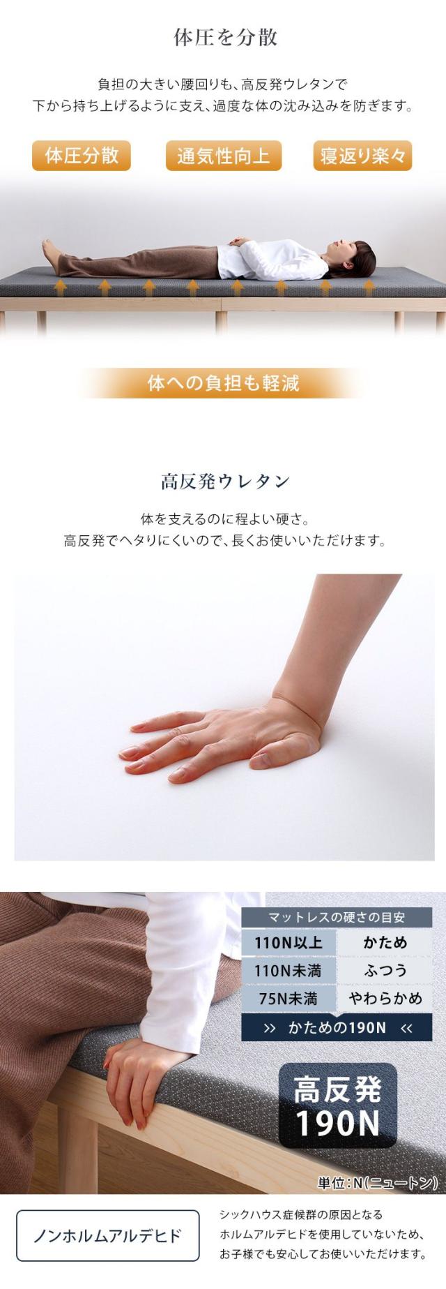 190Nと高反発でヘタりにくいので、長く使っていただけます。