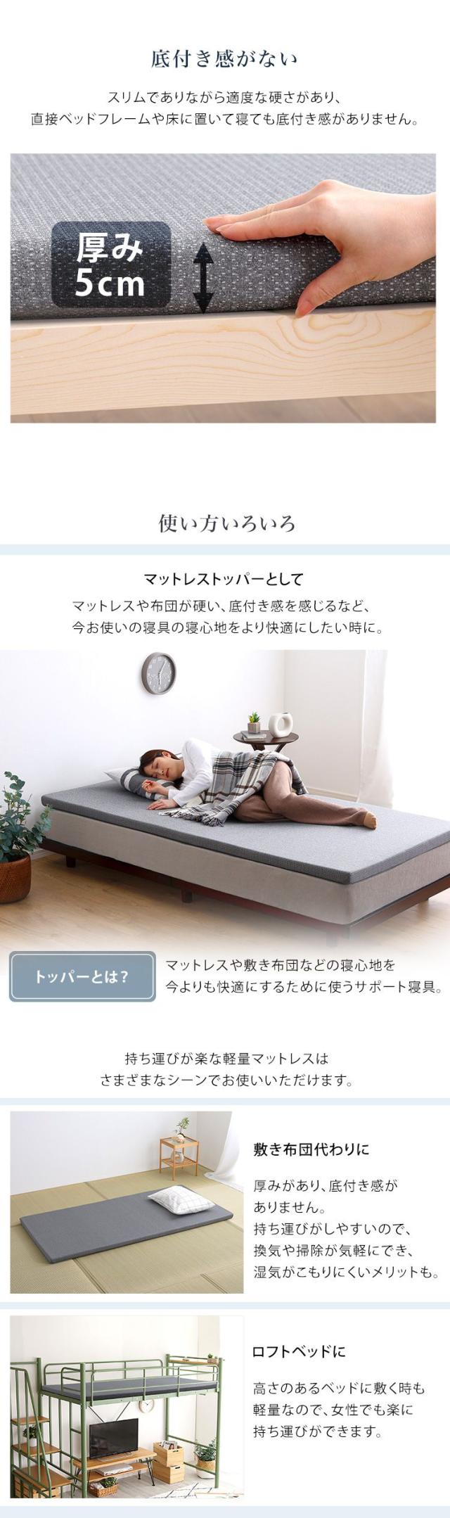 Beleza5 ベレーザ・ファイブ 高反発プロファイルウレタンマットレス セミダブル グレー 幅120cm 奥行195cm 布団 硬め ウレタンマットレス 通気性向上 寝返り楽々 圧力分散(代引不可)【送料無料】