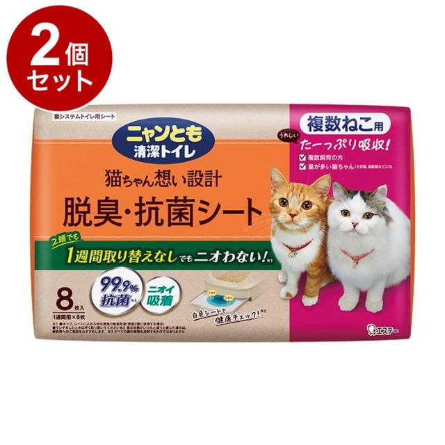 【2個セット】 エステー ニャンとも清潔トイレ 脱臭抗菌シート 複数猫ねこ用 8枚 システムトイレ用 猫シート 猫用シート 猫シーツ 猫トイレ 猫用トイレ ニャンとも にゃんとも【送料無料】