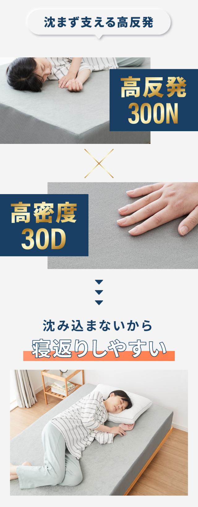 ・高密度30D×高反発300Nでしっかりとした硬めの寝心地