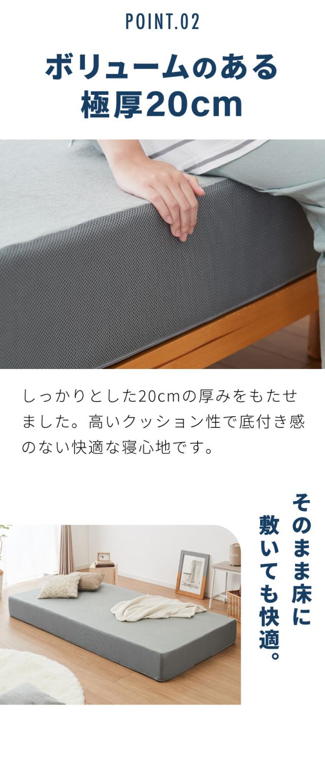 極厚マットレス、厚さ20cm、SS、80×180、ウレタンマットレス、高密度ウレタン、高反発ウレタン、炭入りマットレス、フラットウレタン、両面仕様カバー、パイル地、メッシュ生地、ホテル、民泊、一人暮らし、寮、学生寮、シックハウス対策、エコテックス、ISO9001、アイボリー、グレー、ブラウン、ネイビー、ブラック