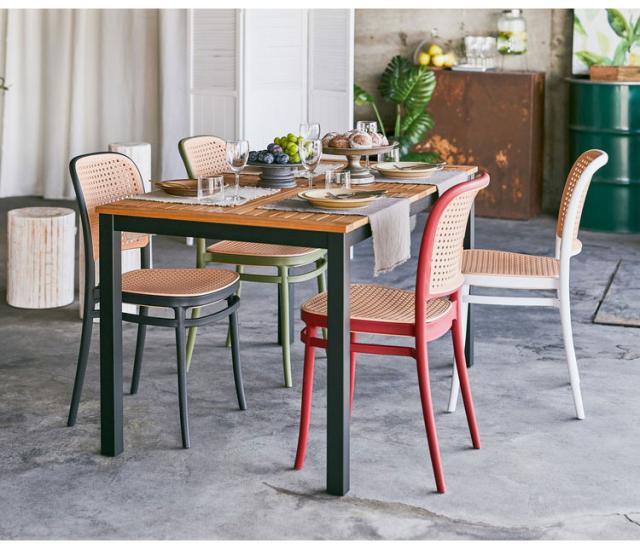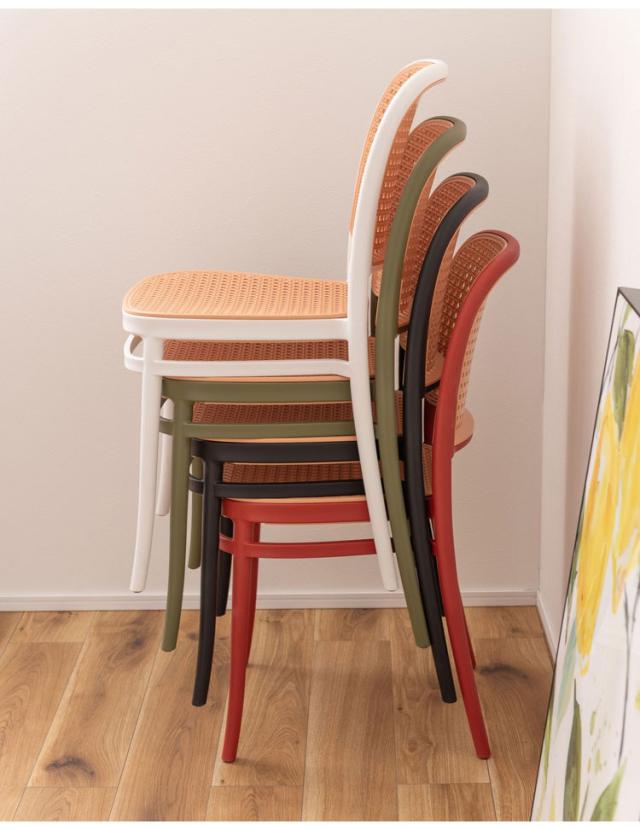 背面と座面にラタン調のデザインを施した、トレンド感溢れるグレイスチェア。ポリプロピレン製なので軽量で耐久性があり、傷や汚れに強いのも嬉しいポイント。どのカラーも落ち着いた合わせやすい色味をチョイスしており、お部屋ではもちろん、ガーデンシーンにもよく馴染むデザインです。スタッキング可能なので場所を取らずに収納することが出来ます。
