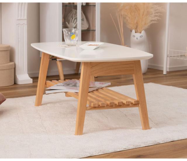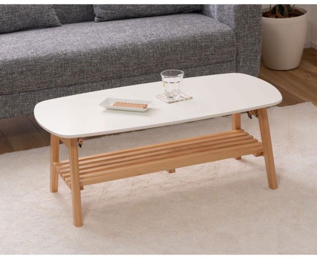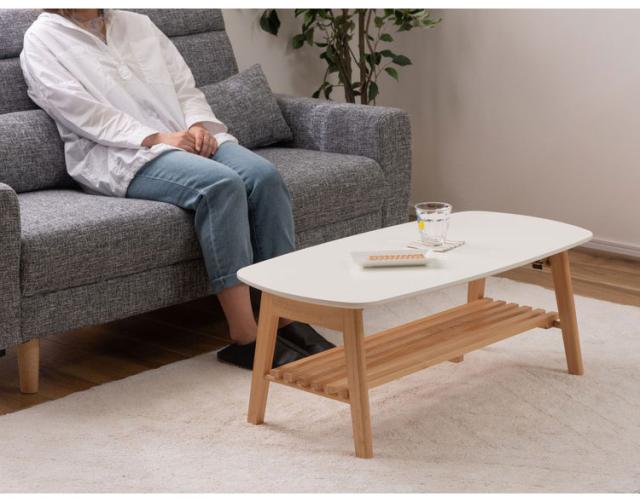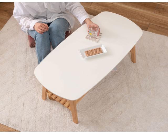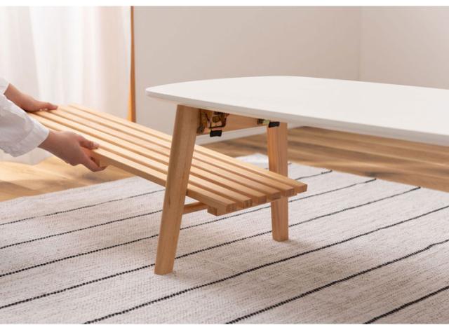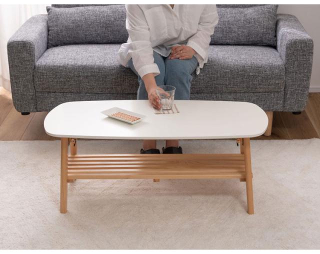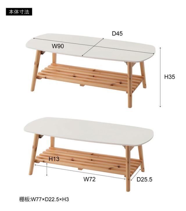 棚付フォールディングテーブル ローテーブル センターテーブル 幅90cm 折りたたみ式 折り畳み式 おしゃれ 北欧 収納 棚付き 木製 天然木 ウッド コンパクト 小さめ 小さい シンプル 韓国インテリア(代引不可)【送料無料】