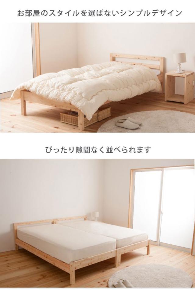 国産ヒノキを贅沢に使ったベッド。高さ2段階調整可能。ピッタリ並べて使用可能です。シンプルなデザイン