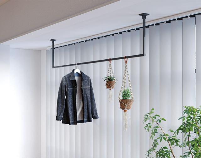 美しく、頼もしいホスクリーン室内物干BAR型 天井付け固定式室内物干