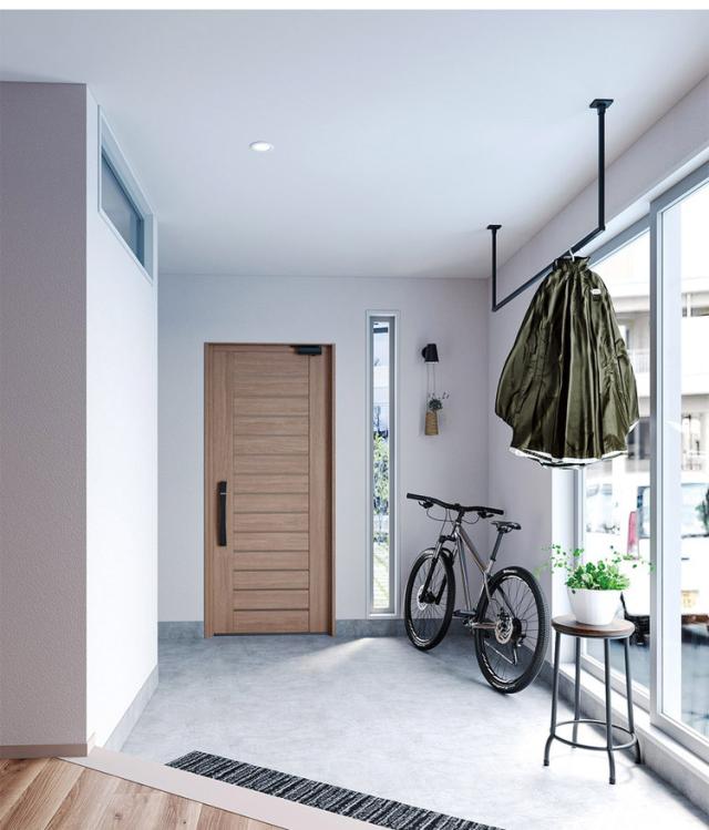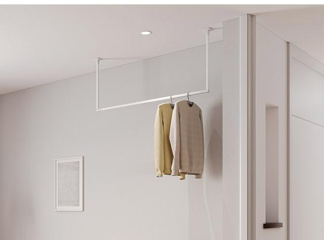 凹凸や段差など視覚的なノイズを必要最低限に。施工がしやすく、丈夫で安全な固定式室内物干です。