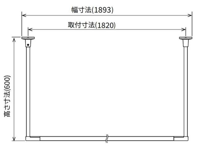 製品サイズ:高さ寸法:600mm、取付幅寸法:1893mm、取付寸法:1820mm、取付穴寸法:69×87.6mm