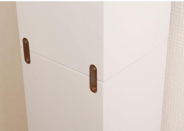 スタッキング時に壁や本体同士を連結する金属連結金具が付属しています。