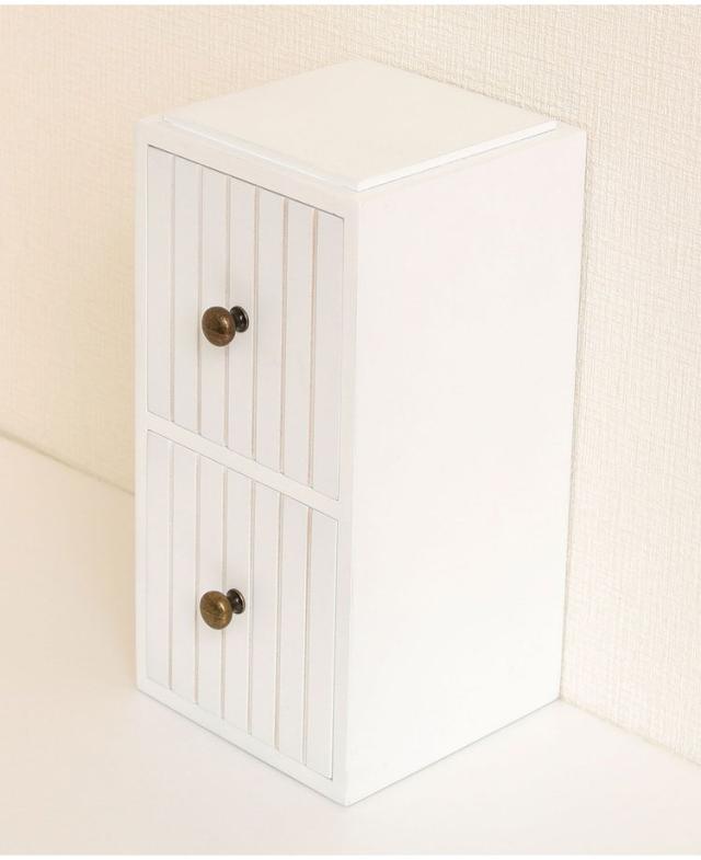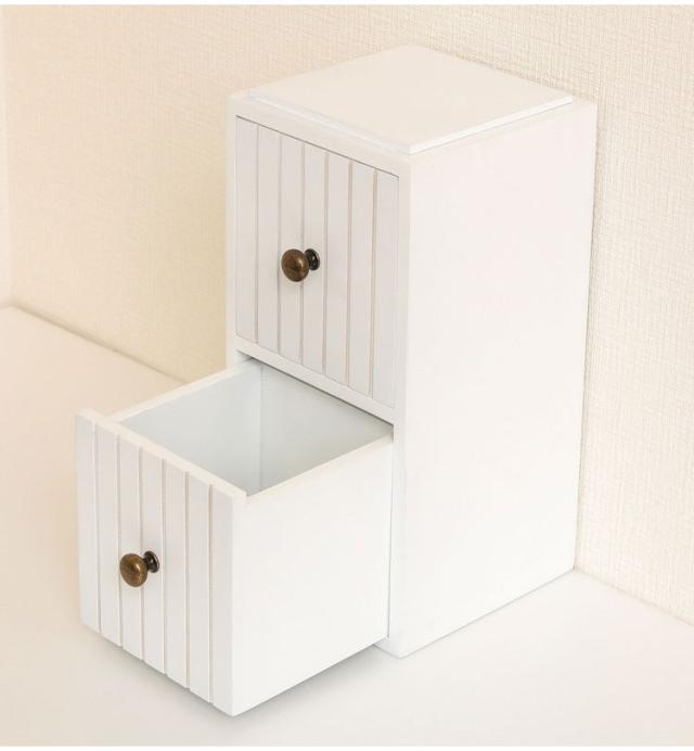 羽目板風デザインに、おしゃれな金属取っ手を合わせた引き出しタイプ。