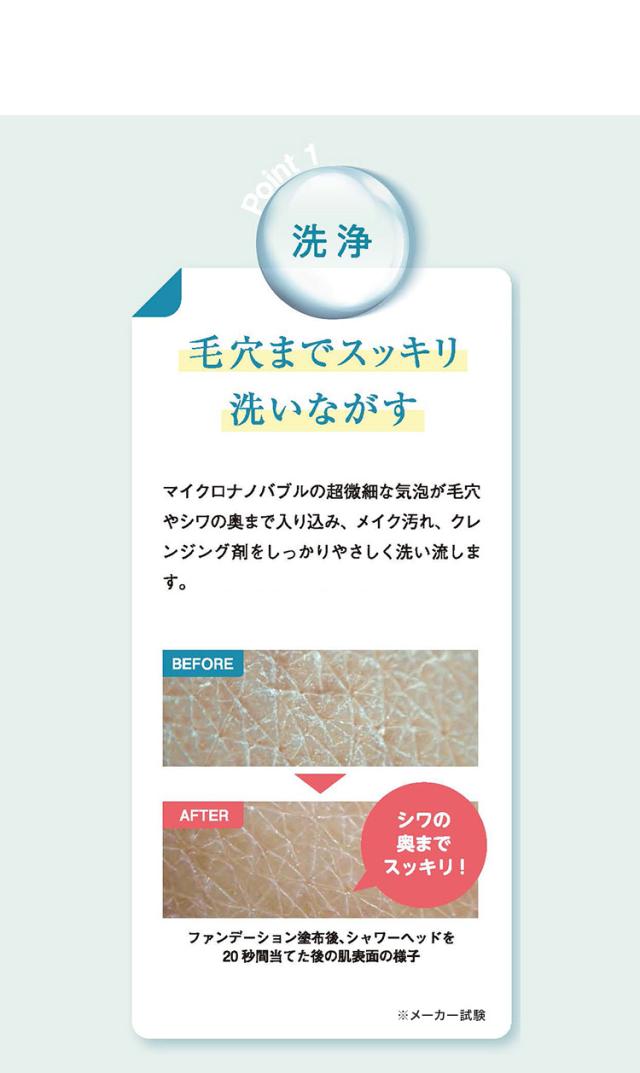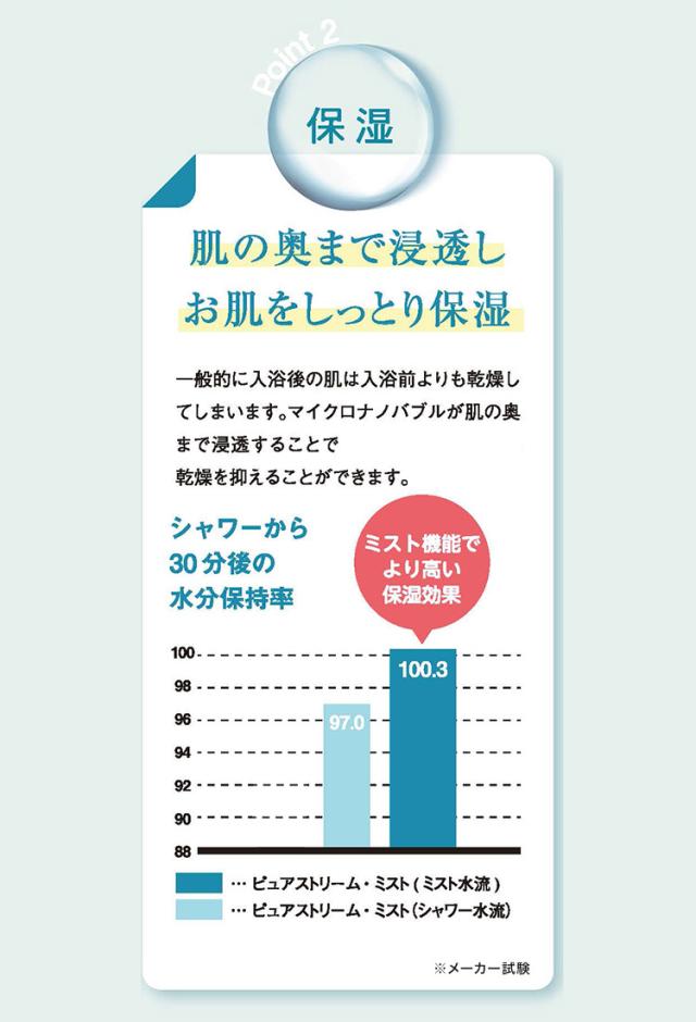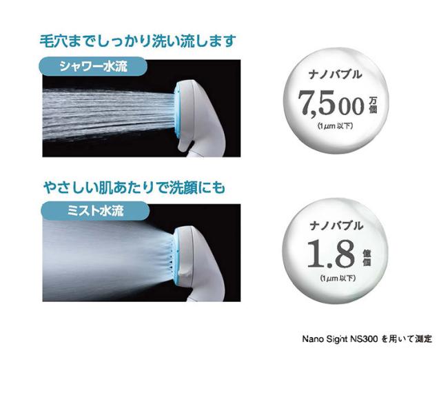 ストレートシャワー時:7,500万個/mL、ミストシャワー時:1.8億個/mL(粒径0.1mm以下)