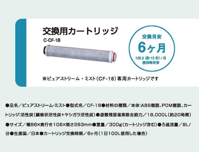 ●カートリッジ交換時期:6カ月(1日100L使用した場合)