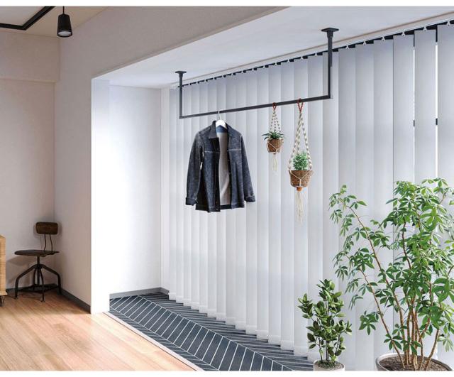 凹凸や段差など視覚的なノイズを必要最低限に。施工がしやすく、丈夫で安全な固定式室内物干です。
