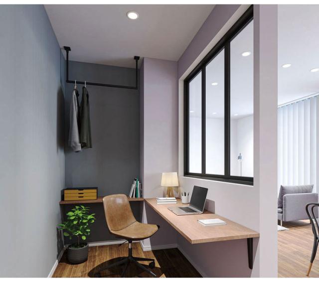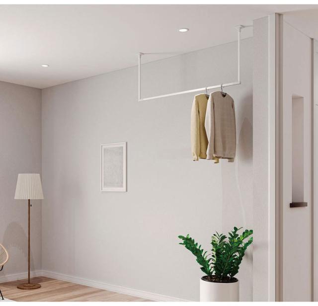 凹凸や段差など視覚的なノイズを必要最低限に。施工がしやすく、丈夫で安全な固定式室内物干です。