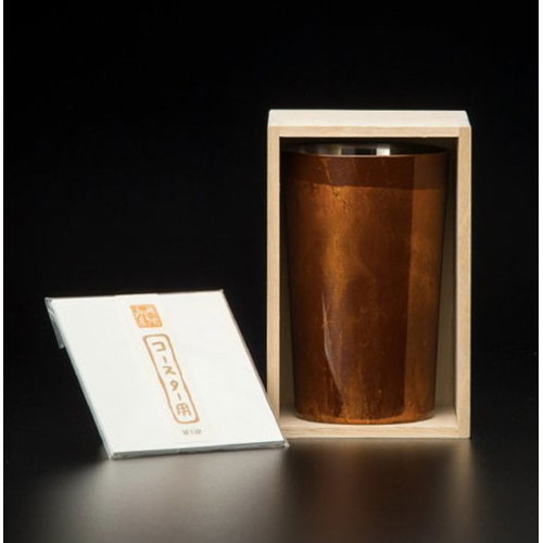 カップ本体は18-8ステンレスを用い、新潟県燕三条で成形、研磨しています。内側上部は鏡面仕上げ、下部はらせん状の磨き筋をつけることで、ビールを注いだ瞬間に勢いよくクリーミーな泡が生まれます。二重構造になっているため水滴が付きにくく 、保冷性にも優れています。ステンレス素材の機能性を生かしつつ、外側を漆で仕上げることで、しっとりとした質感がプラスされ、口あたりもやわらかです。