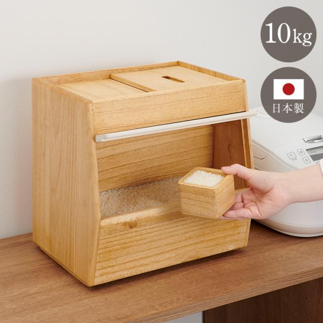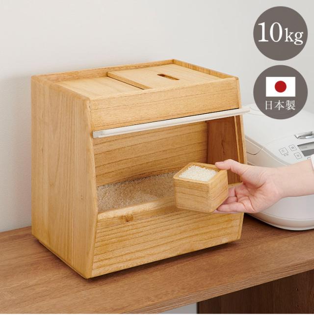 kirisai 日本製 桐のこめ櫃 10kg 米びつ 一合升付き 桐 木製 桐製 調湿 ライスストッカー 底のお米が取りやすい こめびつ 米櫃 保存容器 おしゃれ OSPO-10(代引不可)【送料無料】