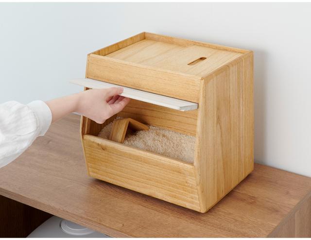 コンパクトな桐製の米びつ。