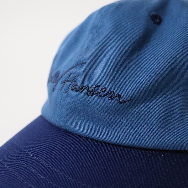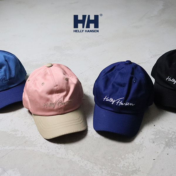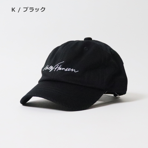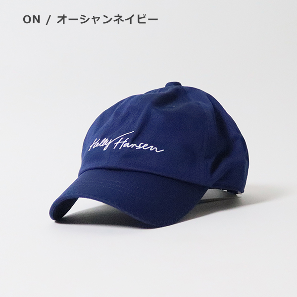 HELLY HANSENの筆記体ロゴを刺繍であしらったキャップ。