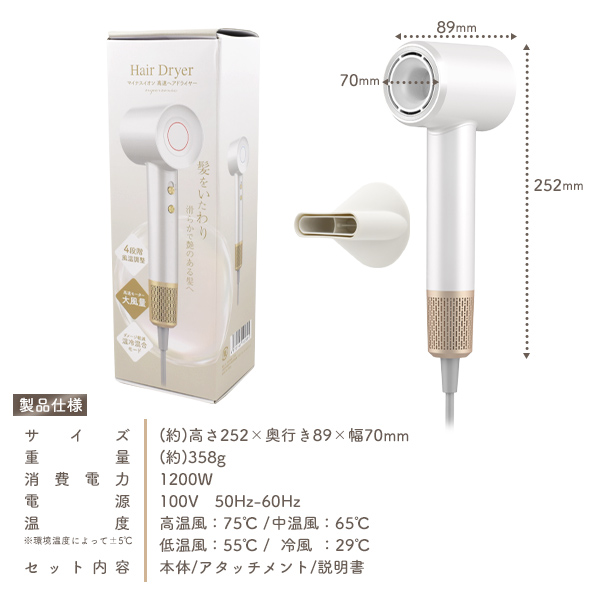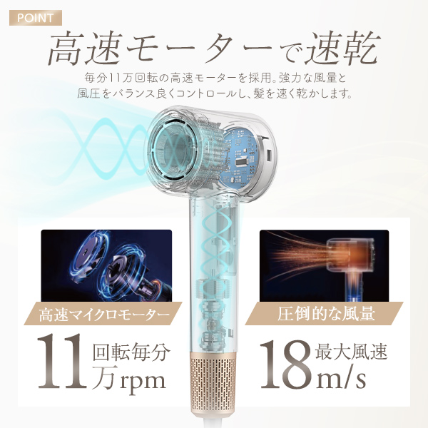 ヘアドライヤー 速乾 大風量 マイナスイオン ドライヤー 時短 タイパ 4段階風温調節 軽量 軽い 358g 疲れにくい 美容家電 美髪 ヘアケア ヘアードライヤー カラー長持ち 頭皮に優しい 温冷混合モード スタイリング 梅雨 髪 うねり対策 ギフト 湯冷め 女性 プレゼント