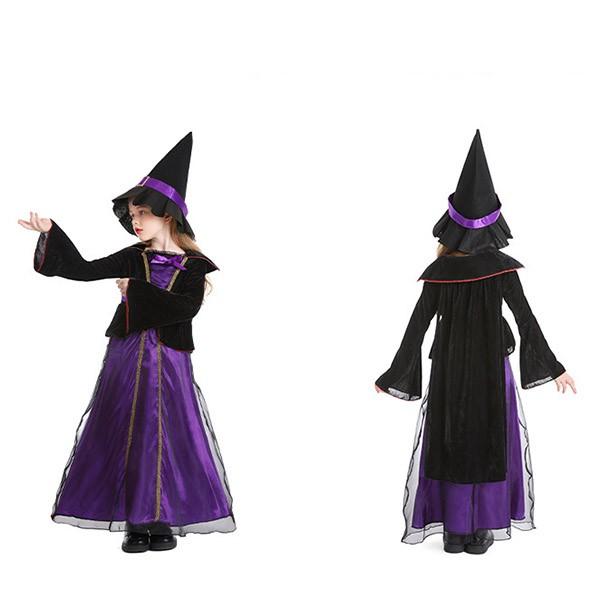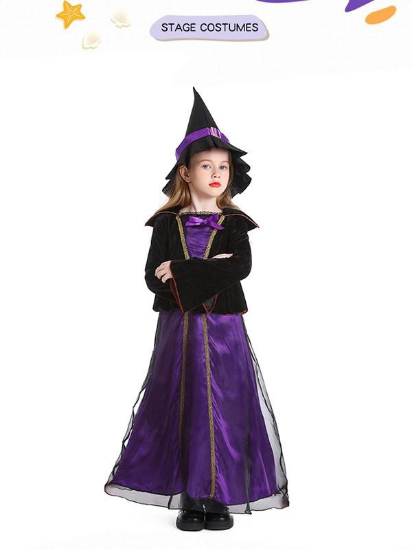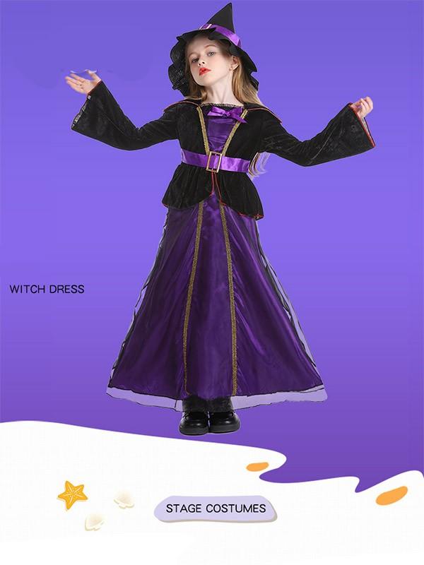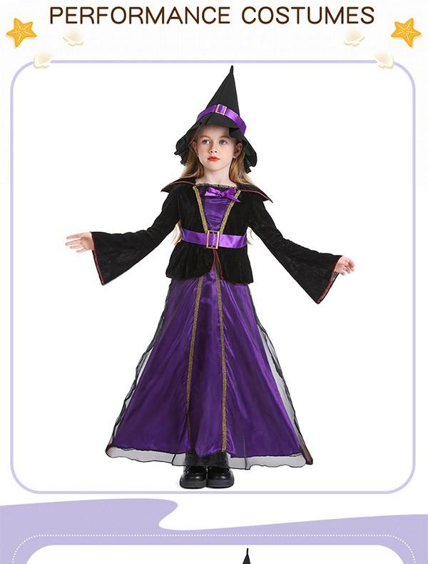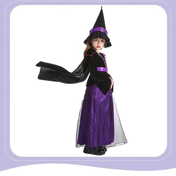 ハロウィン 帽子付き 魔女 コスプレ 帽子キッズ 子供 女の子 仮装 衣装 子供発表会 お姫様 演出服 ドレス ワンピース 長袖 コスプレ 衣装 コスチューム ウィッチ おばけ パーティーeb021sasam5