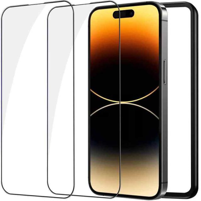 ガラスフィルム iPhone 14 Pro 用 強化ガラス 液晶 保護フィルム 全面保護 アイフォン14プロ 用 画面 保護ガラス ガイド枠付き 2枚セット